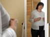 Seule sur le carrelage froid, elle affronte la vérité du miroir.
